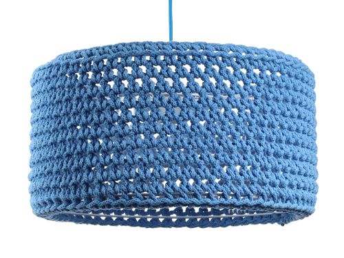 Lampa wisząca COTTON 40 ma abażur skonstrowany z transparentnego tworzywa sztucznego z metalowym stelażem, na który nałożony jest ręcznie dziergany sweterk. Sweterek zrobiony jest z grubego sznurka bawełnianego o niebieskiej barwie. Takie połączenie materiałów sprawia, że światło ciekawie się rozprasza tworząc wyjątkowy klimat we wnętrzu. Zaletą lampy jest jej duża odporność na działanie promieniowania UV, co oznacza, że nawet po wielu latach użytkowania kolor abażuru pozostaje niezmieniony. Dodatkowo sweterek można zdjąć i prać w pralce. Lampa wisząca COTTON 40 jest produktem polskim robionym ręcznie na zamówienie klienta, dzięki czemu jest ona doskonale wykończona w każdym detalu. Do lampy pasują żarówki E27 o maksymalnej mocy 60 Watt - można także zastosować żarówki LED. Lampa sprzedawana jest bez żarówki. Lampa pięknie przyozdobi dziecięcy pokój zapewniając przytulne i miłe źródło światła.