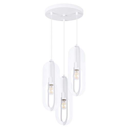 Ta stylowa lampa wisząca charakteryzuje się minimalistycznym, nowoczesnym designem, który idealnie wpasowuje się w każde współczesne wnętrze. Jej wyjątkowy klosz składa się z delikatnych, białych lub czarnych elementów, tworzących elegancką oprawę dla żarówki, co nadaje lampie subtelny, industrialny charakter. Lampa jest dostępna w wersji pojedynczej oraz w kompozycji trzech lamp, co umożliwia tworzenie efektownych aranżacji świetlnych nad stołem w jadalni, w salonie, czy w sypialni. Dzięki swojej prostocie i elegancji, stanowi doskonały akcent dekoracyjny, zapewniając jednocześnie przyjemne, rozproszone światło.