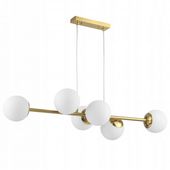 Lampa sufitowa żyrandol LOFT to połączenie elegancji i nowoczesnego designu. Model ten składa się z sześciu żarówek typu E27 umieszczonych w szklanych kulach, co gwarantuje równomierne rozproszenie światła w pomieszczeniu. Wisząca konstrukcja o długości 90 cm umożliwia efektowne oświetlenie dużych przestrzeni takich jak salony czy jadalnie. Kombinacja złotych elementów z białymi szklanymi kulami sprawia, że żyrandol świetnie komponuje się zarówno z wnętrzami utrzymanymi w stylu nowoczesnym, jak i tymi bardziej klasycznymi. Lampa zapewnia nie tylko funkcjonalność, ale również stanowi wyrazisty element dekoracyjny.
