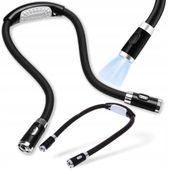 Lampka została zaprojektowana tak, aby można było wygodnie zawiesić ją na szyi. Elastyczne ramię pozwala na błyskawiczną regulację kąta oświetlenia, dzięki czemu światło pada dokładnie tam, gdzie jest potrzebne. To niezwykle praktyczne rozwiązanie, które zapewnia pełną swobodę ruchów i maksymalny komfort użytkowania.