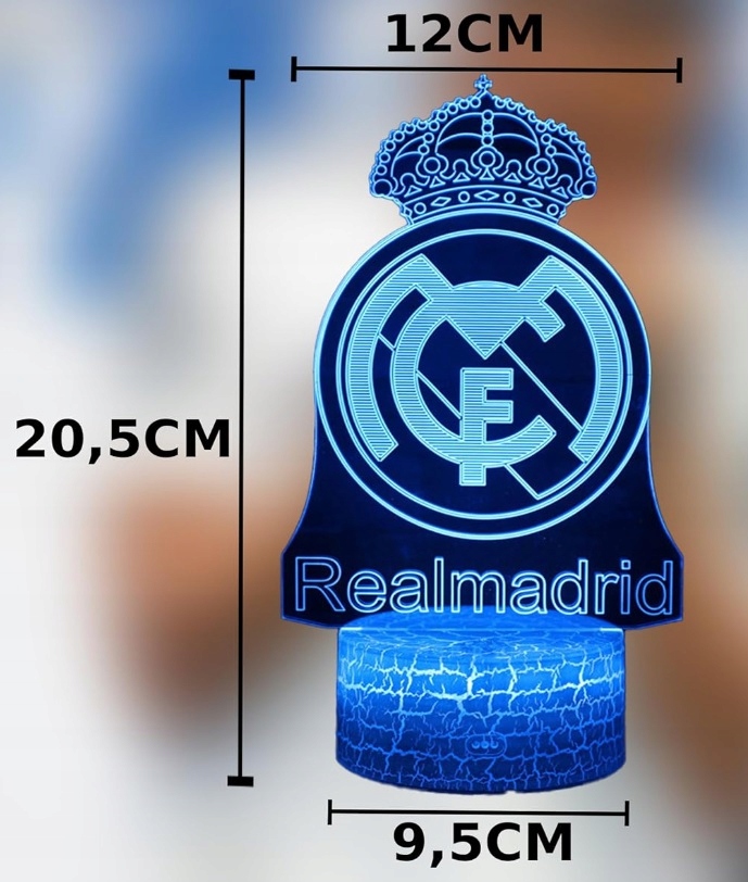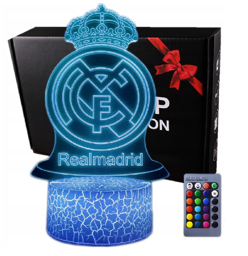 Lampka nocna 3D w kształcie herbu Realu Madryt to świetny gadżet, który może być doskonałą ozdobą, źródłem światła czy miłą niespodzianką dla kibica Realu. Płaska konstrukcja lampki tworzy piękną iluzję 3D, zapewniając niepowtarzalne wrażenia świetlne.