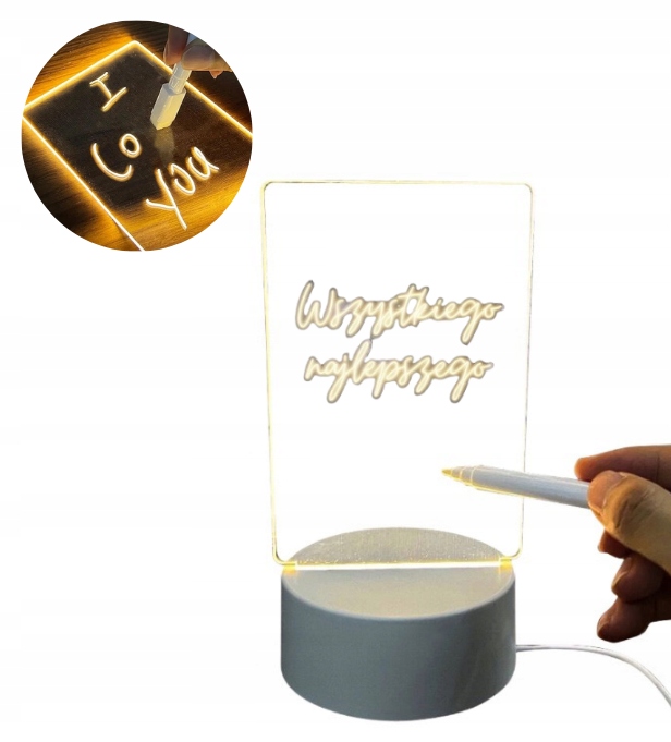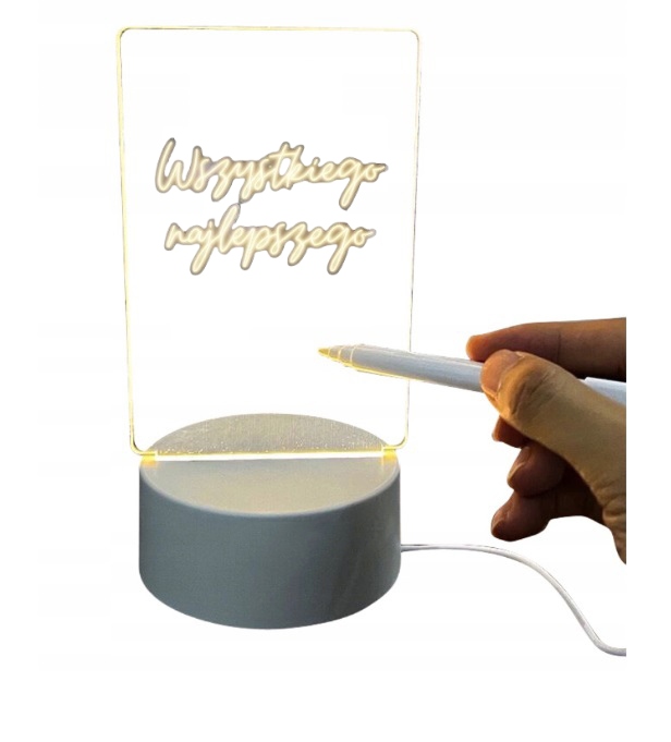 Lampka nocna z możliwością pisania to świetny gadżet, dzięki któremu skutecznie zapiszemy najważniejsze zadania do wykonania w ciągu dnia czy sprawimy miłą niespodziankę najbliższej nam osobie.