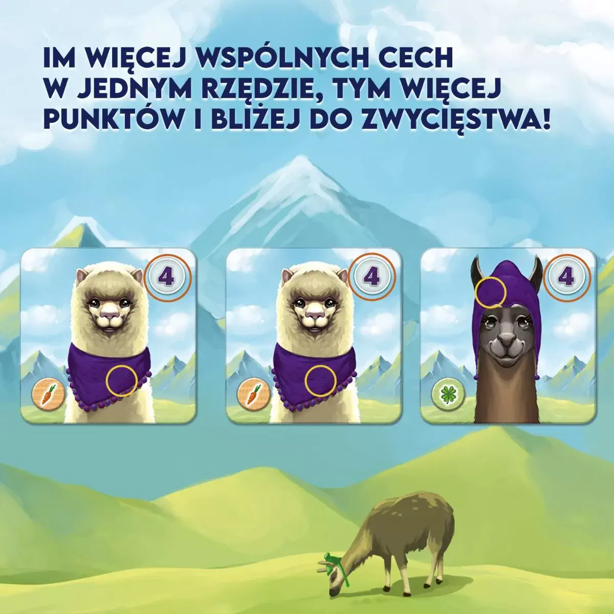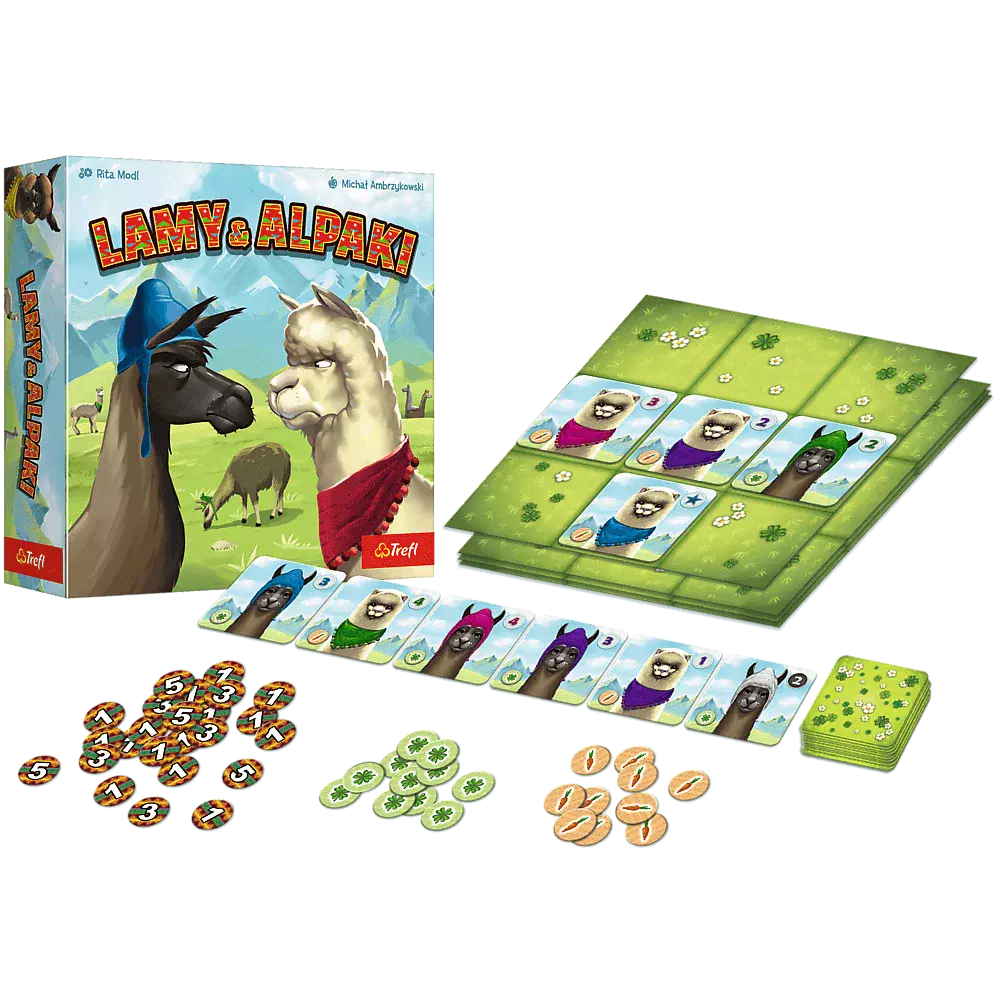 Odkryj grę „Lamy i Alpaki”, która zachęci do zabawy zarówno małych, jak i dużych pasjonatów rozrywki! Ta planszówka wypełniona wyjątkowymi grafikami zapewni niezapomniane chwile z rodziną i przyjaciółmi, a także rozwinie umiejętność strategicznego myślenia oraz zdolności kalkulacyjne. Idealnie sprawdzi się w gronie 2 do 4 graczy, a średni czas rozgrywki wyniesie około 20 minut. Gotowy? Przygotuj się na niezapomniane przygody! Jak grać? Każdy gracz otrzymuje planszetkę, na której musi rozmieścić karty lam i alpak w taki sposób, by zyskać jak najwięcej punktów za uzbierane rzędy zwierząt. Każdy z graczy zwraca uwagę na to, czy w zebranych stadach zwierząt występują cechy wspólne, które umożliwiają na pomnożenie zebranych punktów. Wszystko po to, by wyprzedzić innych graczy w drodze po zwycięstwo!