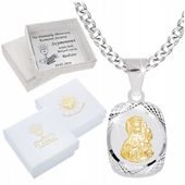 ✔️ Pełne srebro próby 925 z diamentowaniem i pozłacaną miniaturką Matki Boskiej Częstochowskiej 14-karatowym złotem, co nadaje blasku i elegancji bez uczuleń dzięki brakowi niklu.