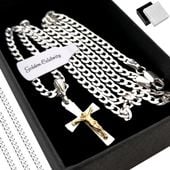 Ten elegancki łańcuszek ze srebra próby 925 to idealny wybór dla mężczyzny ceniącego sobie styl i jakość. Delikatny splot pancerki i unikalna zawieszka w kształcie krzyżyka pokrytego 14-karatowym złotem tworzą wyjątkową całość.