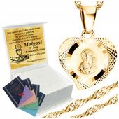 Ten luksusowy łańcuszek z medalikiem z srebra próby 925, pokryty podwójną warstwą 24-karatowego złota, wyróżnia się perfekcyjnym wykończeniem, które zapewnia trwały, naturalny blask i odporność na codzienne zużycie. Idealny na Pierwsze Komunie, Chrzty czy inne ważne okazje, ten naszyjnik subtelnie podkreśla styl, dodając klasy bez wysiłku.