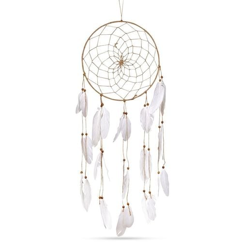 Łapacz snów z naturalnymi koralikami i piórami będzie wyjątkową dekoracją ścienną. Możemy zawiesić go w dowolnym miejscu. Minimalistyczny styl będzie odpowiedni do każdego wnętrza. Łapacz snów jest estetycznie wykonany, umieszczony na ścianie wprowadzi wyjątkowy klimat. Oryginalny produkt holenderskiej marki Home Styling Collection. Wyprodukowano zgodnie z europejskimi standardami.