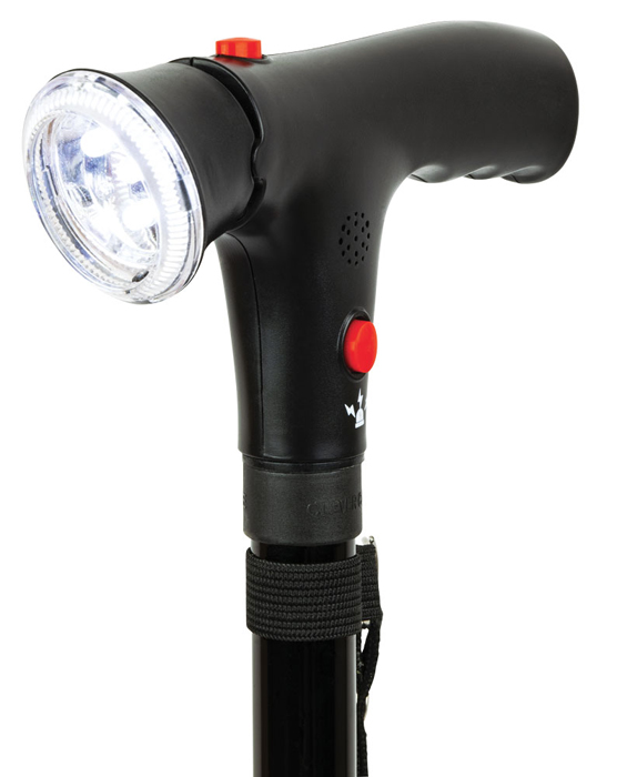 W trosce o Twoją wygodę, laska została wzbogacona o trzy dodatkowe funkcje. Zintegrowana latarka LED oświetli Twoją drogę po zmierzchu, a praktyczny uchwyt do wstawania pomoże Ci, kiedy zechcesz wstać i ruszyć w drogę. Co więcej, w sytuacjach awaryjnych, możesz użyć wbudowanego w laskę alarmu, który można łatwo uruchomić jednym przyciskiem i który podniesie twoje poczucie bezpieczeństwa za każdym razem, gdy wyruszasz w drogę.