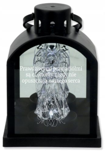 ➡️Subtelna latarenka z czarną kopułką i delikatną figurką anioła podświetlona światłem LED o chłodnej, białej barwie.
