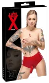 Prezentujemy model marki LateX – czerwone, wysoko wycięte majtki lateksowe w rozmiarze XL, wyposażone w zintegrowany element zewnętrzny o długości 15 cm i średnicy 4 cm. Wykonane z wysokiej jakości lateksu naturalnego, zapewniają nie tylko efektowny wygląd, ale rownież trwałość i elastyczność materiału.