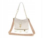 Torebka wygodnie leży na jednym ramieniu. Wysokiej jakości mocny, wytrzymały uchwyt ozdobiony łańcuchem. Dodatkowo odpinany materiałowy pasek z możliwością regulacji.