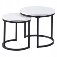 Zestaw stolików kawowych oczaruje Cię swoim minimalistycznym designem. Czarny kolor stelaża pięknie komponuje się z białymi blatami, tworząc kontrastowy, nowoczesny wygląd. Doskonale pasuje do różnych stylów wnętrzarskich, od nowoczesnego po skandynawski.