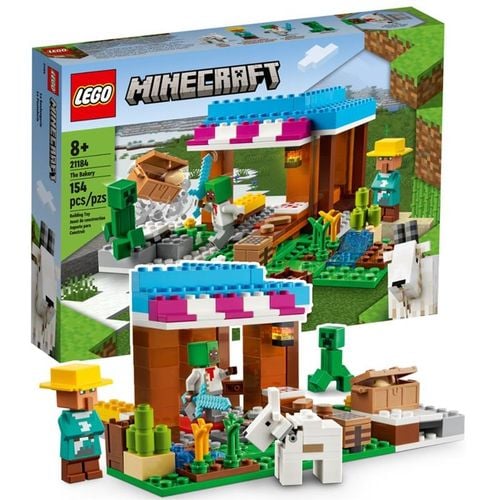 Zestaw LEGO Minecraft Piekarnia (21184) pęka w szwach od różnych możliwości zabawy. Wśród postaci znanych z gry są piekarz, mieszkaniec śnieżnej wioski, koza i Creeper. W tętniącej życiem piekarni jest umeblowany pokój, w którym dzieci mogą odgrywać scenki z życia domowego. Zanim jednak będzie można upiec chleb i ciastka, trzeba zdobyć składniki. Rolnik podzieli się pszenicą, jeśli dzieci pomogą mu ją uprawiać. Mleko można zaś wziąć prosto od kozy. Gdy dzieci zbiorą składniki, będą mogły razem z piekarzem puścić wodze fantazji w kuchni. Zabawę urozmaica straszliwy Creeper, który czai się nieopodal piekarni i chce zniszczyć skrzynię z cennym jajkiem. Dzieci muszą obronić piekarnię, a pomoże im w tym klasyczna minecraftowa broń: diamentowy miecz. Po stoczonej walce modułowy zestaw można łatwo przebudować, co zachęca do wymyślania nowych przygód na okrągło.