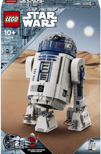 • Figurka LEGO® droida R2-D2 i minifigurka LEGO Star Wars™ — zestaw zawiera figurkę LEGO R2-D2 oraz minifigurkę Dartha Malaka z okazji 25. rocznicy LEGO Star Wars