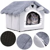 Antypoślizgowa podstawa eliminuje niepożądane przesuwanie się domku, zapewniając kotu pełne poczucie bezpieczeństwa podczas odpoczynku. Starannie dobrane wymiary (33x33x41cm, z dachem 53cm) tworzą optymalne proporcje dla komfortowego wypoczynku.