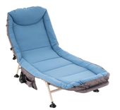 Ten nowoczesny leżak wędkarski w kolorze jasnoniebieskim/szarym ma lekką stalową konstrukcję zaprojektowaną z myślą o dobrej trwałości i stabilności oraz łatwej obsłudze. Oparcie można bezstopniowo regulować w celu uzyskania optymalnej, relaksującej pozycji leżącej i siedzącej. Leżak Fischer można złożyć w celu wygodnego transportu. Wyposażony w 6 nóżek do bezpiecznego stania i wyściełany pianką zagłówek. Mniejsze przedmioty można przechowywać w bocznej kieszeni po prawej stronie. Powierzchnia leżąca wykonana w 100% z poliestru jest wodoodporna i izoluje termicznie. Zwróć również uwagę na inne nasze meble ogrodowe, takie jak krzesła składane, krzesła sztaplowane, krzesła bistro, taborety, ławki, stoły wykonane z drewna lub metalu, a także parasole i stojaki na parasole.