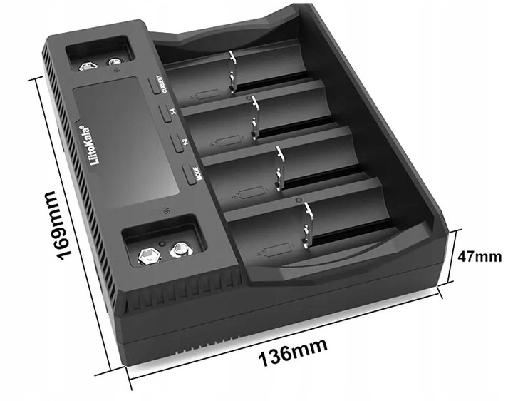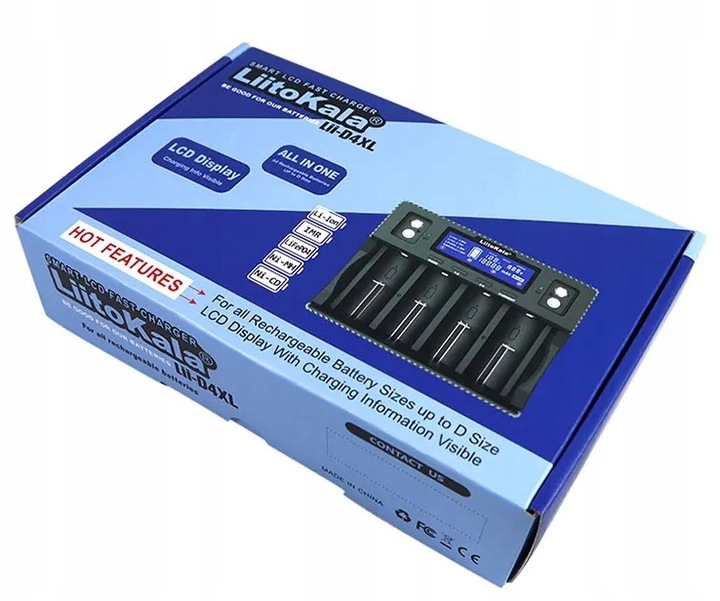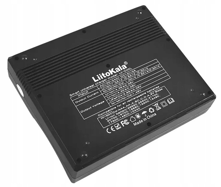 LiitoKala Lii-D4XL to inteligentna uniwersalna ładowarka, która może ładować prawie wszystkie akumulatory litowo-jonowe, Ni-MH/Ni-Cd, LiFePO4-3.20V oraz Ni-MH-9V.