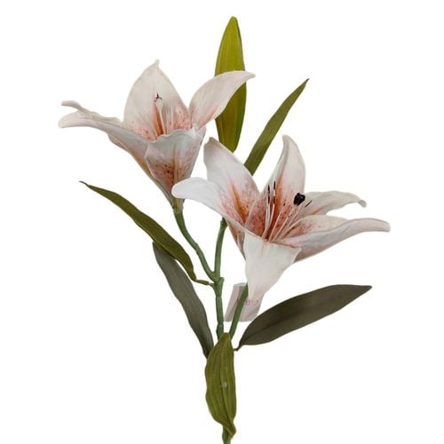 Lilia pojedyncza zgrubej satyny. Na łodydze znajdują się 2 kwiatostany, całość wygląda niezwykle okazale i naturalnie.