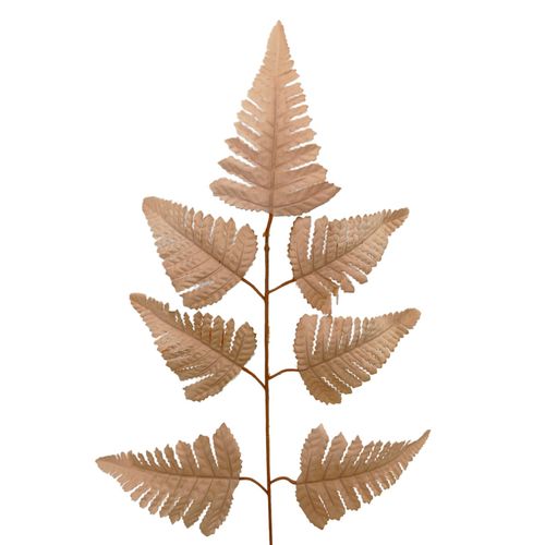 Realistyczny liść paproci wykonany z karbowanego materiału tekstylnego. Dzięki swojej fakturze i długości idealnie nadaje się do większych kompozycji florystycznych – zarówno dekoracyjnych, jak i nagrobnych.