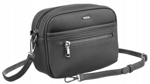 Klasyczna listonoszka o prostokątnych kształcie wyposażona w jedną komorę zapinaną solidnym zamkiem błyskawicznym. Wnętrze wykończone poliestrową podszewką. Torebka wyposażona w 2 kieszenie wewnętrzne (otwartą i na suwak) oraz 3 kieszenie zewnętrzne (dwie na froncie, jedną z tyłu).