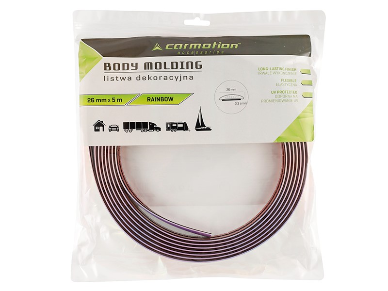 Odkryj niezwykłą elastyczną listwę dekoracyjną w niezwykle efektownym kolorze rainbow, która zmienia barwy w zależności od kąta widzenia czy padania światła. Od srebrnego po błękit, róż i fiolet - ta listwa przypomina kameleona, wprowadzając do Twojego otoczenia niesamowity efekt wizualny. Oryginalny design oraz funkcjonalność sprawiają, że produkt ten jest idealnym rozwiązaniem dla osób, które pragną dodać swojemu samochodowi, jachtowi, przyczepie kempingowej czy wnętrzu domu niepowtarzalnego charakteru.