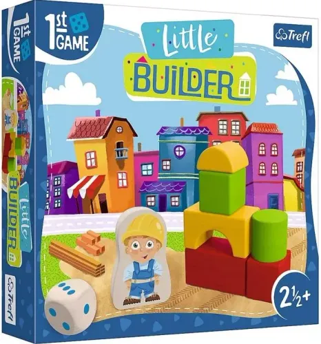 Podaruj swojemu dziecku cudowną zabawę z serią gier planszowych 1st game! W miasteczku Hocki-Klocki każdego dnia powstają nowe budowle. Poszukajcie odpowiednich elementów i stwórzcie kolejny projekt, zanim zła pogoda zepsuje wam plany! Pierwsza gra planszowa „Little Builder” jest dostosowana dla dzieci już od 2,5 roku życia. Zawiera atrakcyjne ilustracje, proste zasady i duże drewniane elementy. Zawartość opakowania: • plansza, • 6 kolorowych, drewnianych klocków, • 4 dwustronne karty, • deszczomierz z 4 żetonami kropelek, • duża, drewniana kostka, • drewniany pionek, • przewodnik dla rodziców.