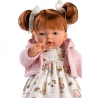 Lalka Płacząca lalka Lea 33 cm Llorens W manufakturze Llorens wierzą, że zabawa jest najlepszą nauką. Dlatego też z wielką miłością tworzą kultowe lalki Llorens, w 100% ręcznie wykonane, o niepowtarzalnych wzorach. Stosowane tkaniny pochodzą od renomowanych marek odzieży dziecięcej. Wszystkie lalki Llorens są zgodne z europejskimi przepisami dotyczącymi bezpieczeństwa dzieci, co gwarantuje, że Twoje dzieci będą się bawić w możliwie najbezpieczniejszy sposób. Charakterystyka Lalka płacząca Lea mierzy 33 cm wzrostu. Buzia, rączki oraz nóżki wykonane są z delikatnego, przyjemnego w dotyku winylu, zaś brzuszek jest miękki, co czyni, iż lalka jest idealna do przytulania. Ciemno niebieskie oczka, malutki nosek, uszka, małe czerwone usteczka i pyzate policzki to cechy tej lali. Nigdy nie rozstaje się ze swoim ukochanym smoczkiem, gdy ktoś chce go zabrać, zapłacze i zawoła "Mama", "Pappa", uspokaja się po włożeniu smoczka do buzi. Lalka ma gęste rude włosy z grzywką i dwa kucyki. Lea ubrana jest w białą sukieneczkę w misie, różową bluzę z kapturem, bloomersy oraz skarpetki. Lalka została zapakowana w ozdobny karton, więc bez zbędnych dodatkowych opakowań, może być wręczona jako prezent. Jest to wspaniała zabawka dla dzieci w każdym wieku. Kochamy hiszpańskie lalki Llorens! Dane techniczne Waga lalki:1,1 kg Długość lalki: 33 cm Wielkość opakowania:10 x 38 x 21 cm LL33138