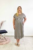 Ta modna sukienka z lnu i bawełny to prawdziwy must-have na lato. Jej luźny, uniwersalny krój dopasuje się do wielu sylwetek, a naturalny materiał pozwala skórze oddychać nawet w najbardziej upalne dni. Lniana sukienka maxi z aplikacją kwiatu to idealna propozycja dla kobiet ceniących styl i wygodę w jednym. Dzięki wiązaniu na boku można łatwo dopasować ją do własnych proporcji, podkreślając talię w naturalny sposób.