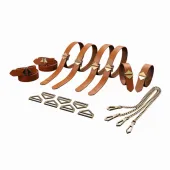 Wszystkie elementy wykonano z wysokogatunkowych, trwałych materiałow o przyjemnej w dotyku powierzchni, ktore zapewniają komfort użytkowania oraz solidność. Komplet wyrożnia się eleganckim, brązowym kolorem i estetycznym wykończeniem. Całość jest zapakowana w praktyczne pudełko, zapewniające dyskretne oraz bezpieczne przechowywanie zestawu.