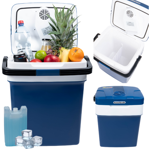 Przenośna lodówka turystyczna USB 29l niebieska z wyświetlaczem + wkład gratis