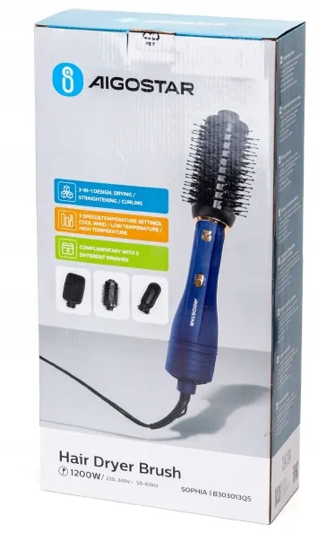 Szczotka modelująca Aigostar to praktyczne urządzenie 3w1, które zastępuje suszarkę, lokówkę i prostownicę. W zestawie znajdziesz: