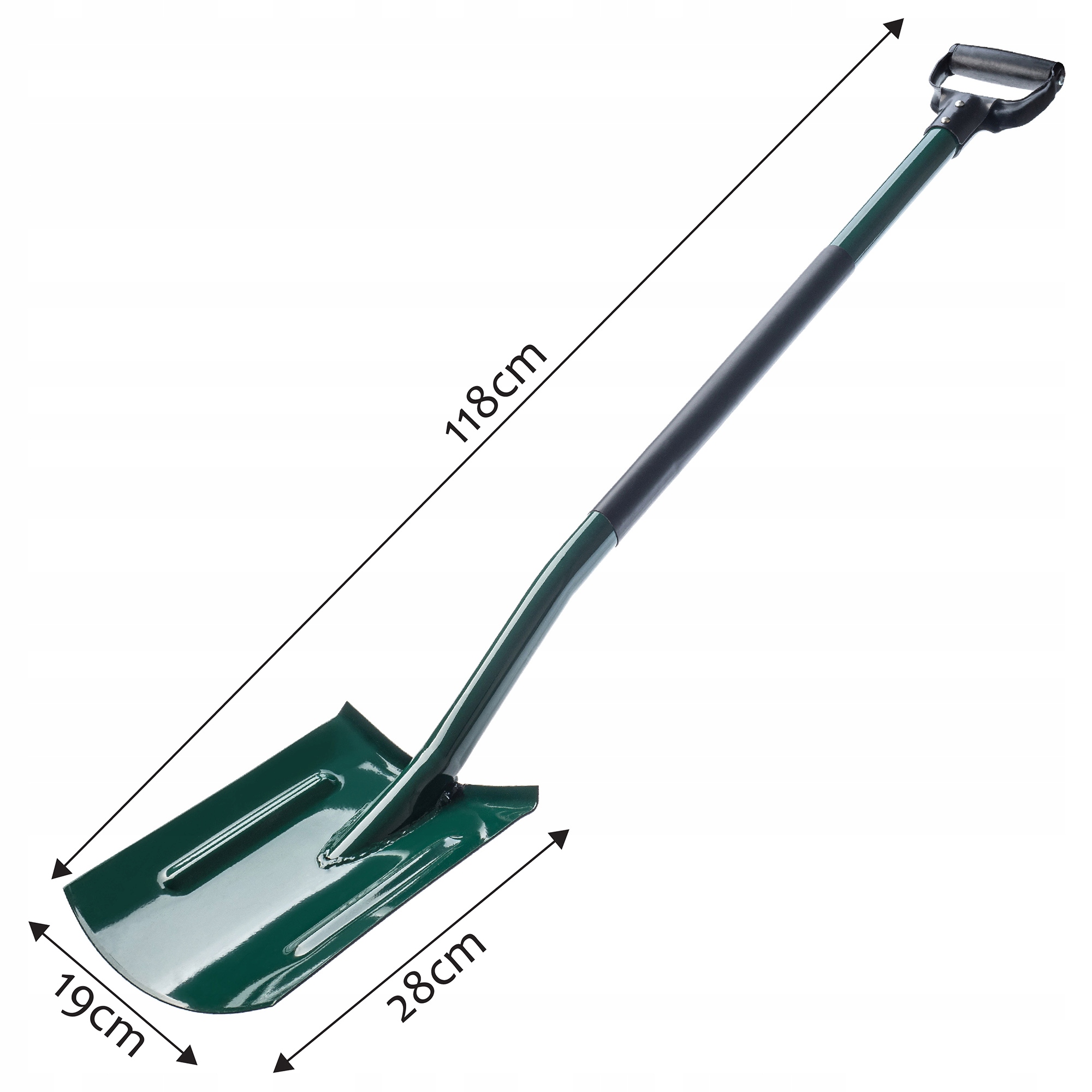 Szeroka stopa łopaty ze specjalnym profilem gwarantuje dobre przenoszenie siły i zapobiega ześlizgiwaniu się. Odpowiednia wysokość narzędzia pozwala na zachowanie wyprostowanej pozycji ciała podczas pracy, co zapobiega kontuzjom i bólom mięśni oraz kręgosłupa po skończonych obowiązkach w ogrodzie. Przedmiot ogrodowy zapewnia przyjemny chwyt w każdej pozycji dzięki ergonomicznemu uchwytowi typu D, umożliwiającemu trzymanie narzędzia obiema dłoniami.