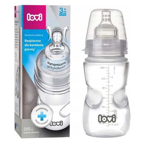 Butelka LOVI jest bezpieczna dla dziecka karmionego piersią, ponieważ nie zaburza odruchu ssania. Została zaprojektowana i przebadana pod nadzorem medycznym. Posiada unikalny dynamiczny smoczek do karmienia z cienką wydłużającą się końcówką, twardą, profilowaną podstawą i systemem odpowietrzania super vent.