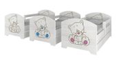 Nie zapomnieliśmy również o praktyczności! Szuflada na kółkach pomieści pościel i ulubione zabawki Twojego dziecka. To doskonałe rozwiązanie, które pozwala zaoszczędzić miejsce i wprowadza ład w pokoju. Oferujemy wiele wzorów i kolorów, co pozwoli Ci dostosować łóżko do indywidualnych potrzeb Twojego malucha. Możesz wybrać z kolekcji grawerów, takich jak wizerunki kota, żyrafy czy misia, dostępnych w kolorze naturalnym, niebieskim lub różowym.
