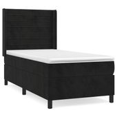 Łóżko kontynentalne z materacem, czarne, aksamit 90x190 cm