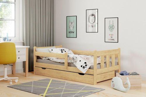 To piękne i funkcjonalne łóżko z szufladą idealnie pasuje do każdej aranżacji pokoju dziecięcego. Wykonane z wysokiej jakości litego drewna sosnowego i pokryte lakierem, łóżko to wygląda bardzo elegancko i stylowo. Jego wymiary wynoszą 164/88/60 cm, dzięki czemu doskonale sprawdzi się zarówno w małych, jak i dużych pokojach.