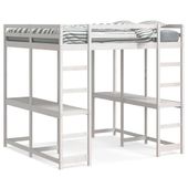 Łóżko na antresoli, z biurkiem i drabinką, białe, 160x200 cm