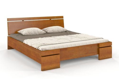 Łóżko SPARTA to łóżko wysokie - jego wysokość wynosi 86 cm, co znacząco ułatwia wstawanie z niego. Duża wysokość jest także niezastąpionym sprzymierzeńcem w trosce o czystość. Frontową część łóżka wieńczą mocne nogi. Nadano im niepowtarzalny wygląd - tworzą je dwa elementy poziome, między którymi znajduje się przestrzeń nadająca łóżku lekkości. W tej samej konwencji zaprojektowany został zagłówek - dodatkowo, dla zwiększenia wygody, został on lekko pochylony. Materiał: lite drewno sosnowe. Kolor drewna: do wyboru ze wzornika. Sposób wykończenia drewna: dwukrotne szlifowanie + bejca + 2 warstwy lakieru. Drewno łączone na "mikrowczepy" - dzięki temu pozbawione jest ono skaz i sęków po widocznej stronie, a co najważniejsze, jest bardziej wytrzymałe na uszkodzenia i działanie wilgoci – wykazuje lepsze właściwości mechaniczne w stosunku do drewna litego i nie wypacza się. "Piąta" noga wzmacnia konstrukcję łóżka.