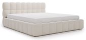 Łóżko zostało wykonane w tkaninie Coral – to nowoczesny materiał tapicerski typu bucle, charakteryzujący się miękką i puszystą powierzchnią. Jej struktura przypomina owczą wełnę z widocznymi małymi pętelkami i zgrubieniami, tworząc trójwymiarowy efekt. Dostępna jest w kolorach umożliwiających dopasowanie do różnych aranżacji wnętrz. Tkanina Coral doskonale sprawdza się jako obicie mebli wypoczynkowych, nadając im elegancki i przytulny charakter. Dzięki wysokiej odporności na ścieranie oraz światło, materiał ten gwarantuje trwałość i zachowanie intensywności kolorów.