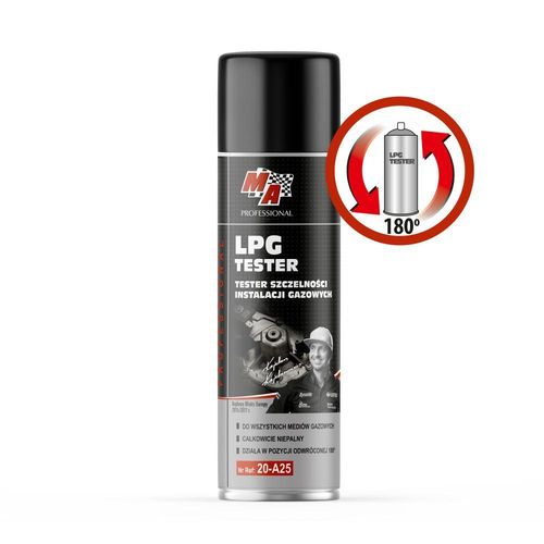 Profesjonalny preparat do szybkiego badania szczelności ciśnieniowych instalacji gazowych, a także wodnych i tlenowych. Pozwala precyzyjnie i bezpiecznie zlokalizować miejsce nieszczelności. Zalecany do kontroli samochodowych instalacji LPG. Może być użyty na powierzchnie metalowe i wykonane z tworzyw sztucznych. Można stosować na nieczyszczone powierzchnie. Niepalny. Gazem nośnym jest CO2. Skuteczny w zakresie temperatur od -20°C do 50°C.