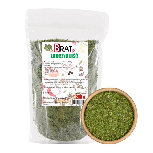 Lubczyk liść 200g to najwyższej jakości, naturalny produkt, który powinien znaleźć się w każdej kuchni pasjonatów gotowania. Ciesz się aromatycznym i intensywnym smakiem niezrównanego lubczyku, który przeniesie Twoje potrawy na zupełnie nowy poziom. Zamknij w swojej kuchni świat starożytnych tradycji kulinarnych, sięgając po ten wyjątkowy dodatek.