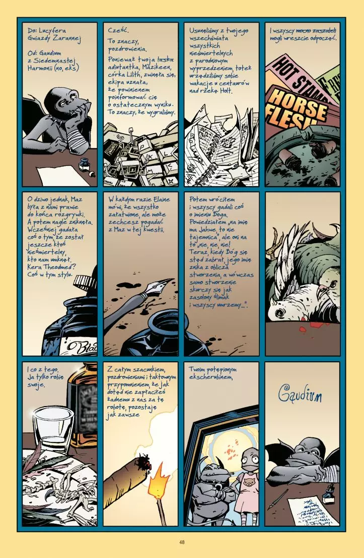 Trzeci, ostatni tom zbiorczy opowieści o Lucyferze Gwieździe Zarannej i jego walce z Jahwe. Drzewo Kosmosu upada, a wilk Fenrir wykorzystuje okazję, by szturmem zdobyć Niebo. Lucyfer próbuje go powstrzymać podejmując podróż, której pierwszy przystanek to bramy piekieł, a ostatni – sam Bóg. Połączeni wbrew woli we wspólnej walce, Bóg i Diabeł ostatecznie rozstrzygają spory i odpowiadają na pytanie, czy wolna wola naprawdę istnieje. Autorem scenariusza jest Mike Carey („Hellblazer”), a rysunków Peter Gross („The Unwritten”) i Ryan Kelly („Northlanders”), z pomocą takich artystów jak P. Craig Russell, Marc Hempel, Ronald Wimberly, Colleen Doran, Michael William Kaluta, Dean Ormston, Zander Cannon i Jon J. Muth. Album zawiera oryginalne zeszyty „Lucyfer” # 50–75 Jako ostatni szlif oraz zeszyt specjalny „Lucyfer: Nirvana”.