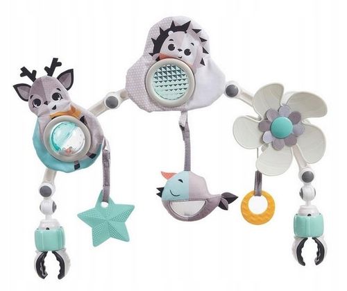 Ten wyjątkowy łuk edukacyjny został zaprojektowany z myślą o kompleksowym rozwoju małego dziecka. Zawiera różnorodne elementy stymulujące - grzechotki z szeleszczącymi główkami, lusterko, przezroczysty graniasty jeżyk oraz interaktywny wiatraczek. Każdy element został starannie dobrany, aby wspierać rozwój zmysłów wzroku, słuchu i dotyku, jednocześnie trenując precyzyjne ruchy rączek i koordynację wzrokowo-ruchową.