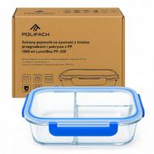 Ten wysokiej jakości szklany pojemnik 3-dzielny o pojemności 1050 ml wyróżnia się solidną konstrukcją i precyzyjnym wykonaniem, które zapewniają niezawodne przechowywanie żywności. Z podziałem na sekcje (2x 315 ml i 420 ml) oraz pokrywką z odpowietrznikiem i niebieską uszczelką, idealnie organizuje posiłki, zachowując ich świeżość i smak bez wysiłku.