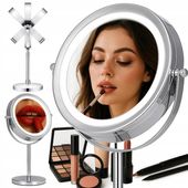 To stojące lusterko kosmetyczne LED o dwustronnej konstrukcji zapewnia wyjątkową widoczność w każdych warunkach, dzięki 18 diodom LED równomiernie oświetlającym twarz, szyję i dekolt. Z wysokością 30 cm i średnicą soczewki 13 cm, idealnie wspiera codzienne rytuały pielęgnacyjne, gwarantując klarowny obraz i komfort bez cieni czy zniekształceń.