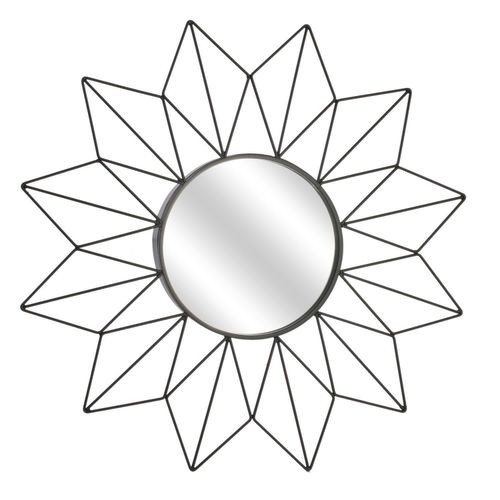 Lustro Volant to stylowy dodatek do industrialnego i nowoczesnego wnętrza. Oprawa wykonana z czarnego drutu ułożonego w geometryczny wzór przypomina płatki kwiatu, którego środkiem jest zwierciadło. Będzie ono pięknie wyglądać w łazience, salonie, sypialni czy przedpokoju. Z pewnością będzie zwracać uwagę swoim nietypowym designem. To stylowy i funkcjonalny dodatek dla Twojego mieszkania.