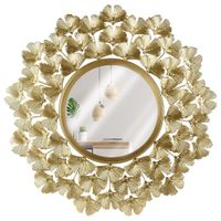 ✅ EFEKTOWNA RAMA - Bogato zdobiona okrągła rama wykonana z metalu w kolorze złotym. Rama składa się z elementów w kształcie liści miłorzębu japońskiego.