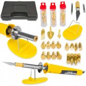 ✔️ Kompletny zestaw zawierający lutownicę-wypalarkę, walizkę transportową, pojemniczki na groty oraz stabilną podstawkę.