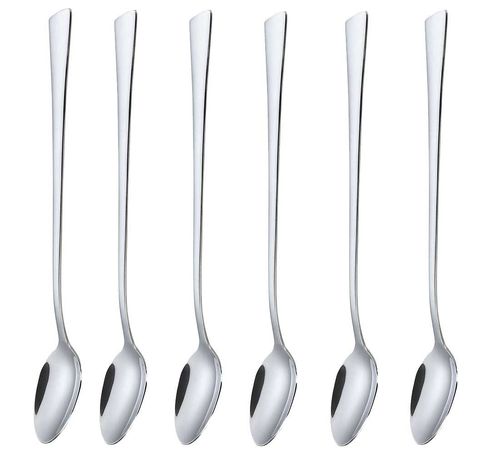 6 łyżeczek koktajlowych ze stali nierdzewnej polerowanej na wysoki połysk.