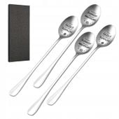 ✨ Wyjątkowy Zestaw 4 Grawerowanych Łyżeczek Huiguli ze Stali Nierdzewnej 310! Długi Uchwyt (20 cm), Polerowanie Lustrzane, Trwały Grawer, Ekskluzywne Pudełko Prezentowe – Idealny Prezent na Parapetówkę! ✨